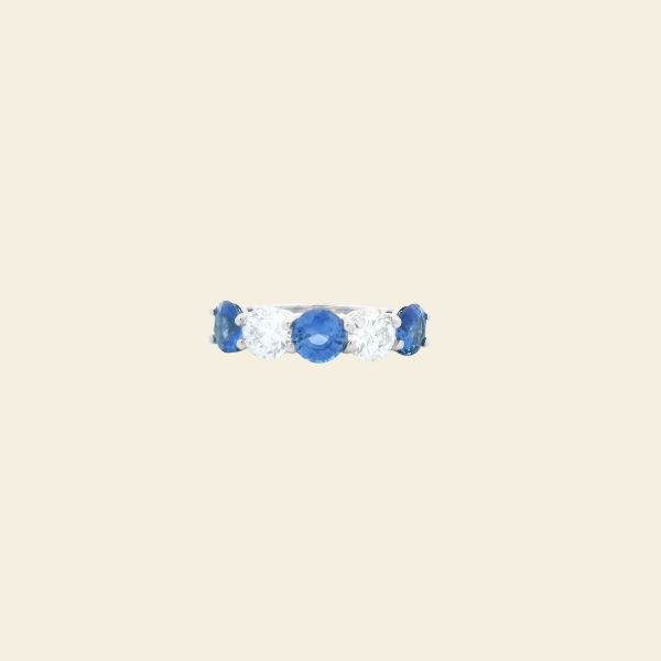 Five Stone Blue Sapphire and Diamond Ring