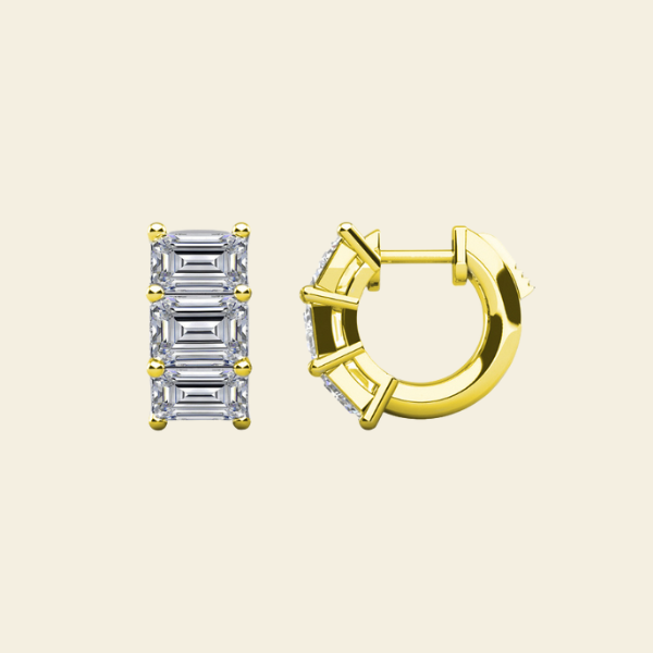 Understated luxury for every day. These huggies feature three emerald natural diamonds per earring, offering just the right amount of sparkle for effortless, everyday wear. Crafted for comfort and timeless appeal, they’re your go-to pair for any occasion.