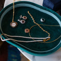 The pendant is set in solid 14K gold with a blend of polished and subtly textured details that add richness and character. It hangs from a 3.2mm rolo chain—luxurious in weight yet refined in look—measuring 18 inches for the perfect everyday length.